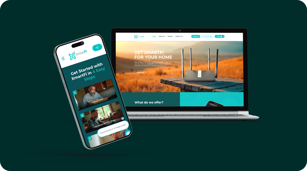 Rediseño del sitio web para XmartFi, proveedor de internet rural en EE.UU. El proyecto se enfocó en mejorar la experiencia del usuario, modernizar la interfaz y comunicar con claridad los servicios a comunidades en zonas remotas.